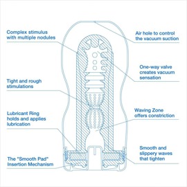 De gevarieerde binnenstructuur met verschillende diameters masseert de penis intensief. En aan het einde van de masturbator zorgt de innovatieve vacuümopening voor zuigsensaties als de beste blowjob. Verwijder daartoe de sticker van de vacuümopening en sluit of open deze met uw vinger (zoals u wenst).